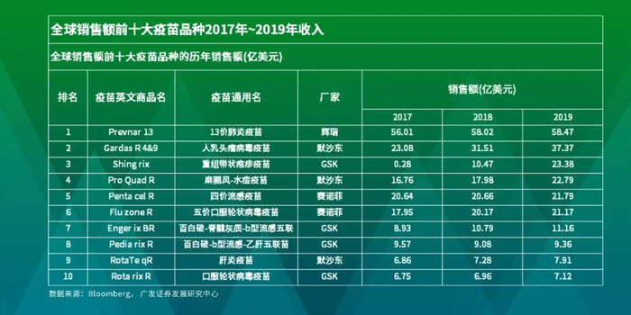 但在优秀的商业化能力之外,如果对全球销售额前十大疫苗品种进行分析,很容易发现全球前十大疫苗里几乎都是各自疾病的创新疫苗,只有流感疫苗由于季节性导致的产能限制,因此不是一家独大,可以判断疫苗研发的可选方向较为受限。而另外值得一提的是,全球前十大疫苗全部由四大疫苗企业生产,也体现了疫苗行业高度集中的特点。