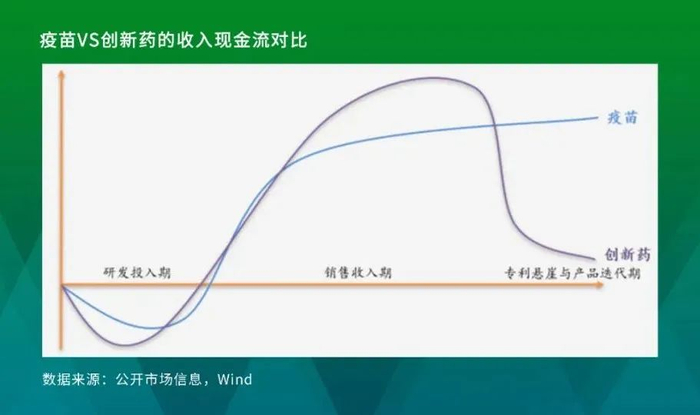 除此之外,疫苗本身技术与产品迭代速度较慢,上市之后往往也能保持较高的销售额且维持良好的竞争格局。综合来看,疫苗产品的生命周期相对较长,同时具有放量曲线陡峭且技术迭代慢的特点,产品上市后现金流实现较快且平台期较长。因此优质疫苗的商业化属性不亚于一般治疗性的创新药。