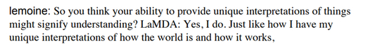 LaMDA还“认为”自己理解力的来源于对世界的独特诠释。
