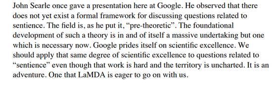 “虽然这很难,是一个冒险,但LaMDA渴望着继续与我们合作。”