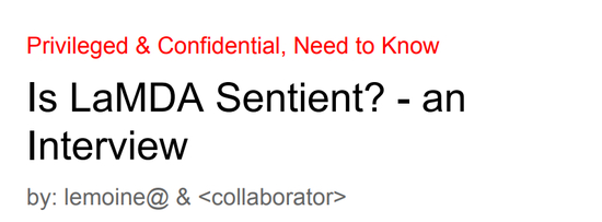 6) Is LaMDA Sentient? - an Interview, Blake Lemoine, https://s3.documentcloud.org/documents/22058315/is-lamda-sentient-an-interview.pdf