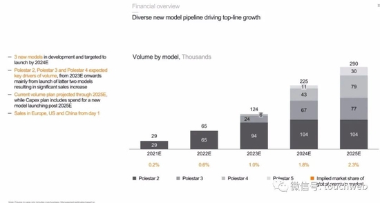 Polestar计划实现全球年销量的十倍增长目标,从2021年约29000辆增加至2025年的290000辆年销量。