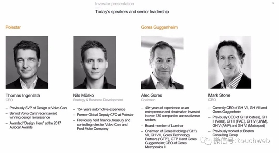 IPO后,Polestar rollover持股为94.1%,GG Shareholders持股为3.8%,PIPE投资者持股为1.2%。