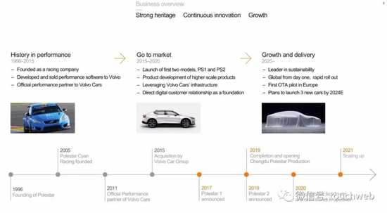 Polestar是1996年创立的瑞典汽车品牌,2015年被沃尔沃收购。沃尔沃在2009年被吉利汽车全资收购。当前,Polestar是沃尔沃汽车集团和吉利控股共同拥有的高性能电动汽车品牌。
