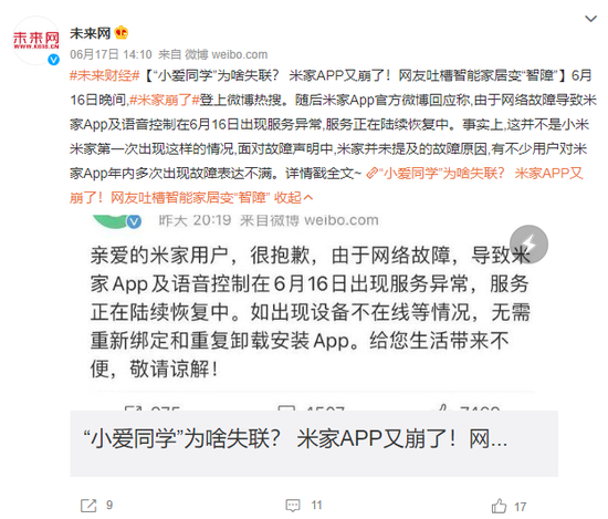 米家服务器崩了。