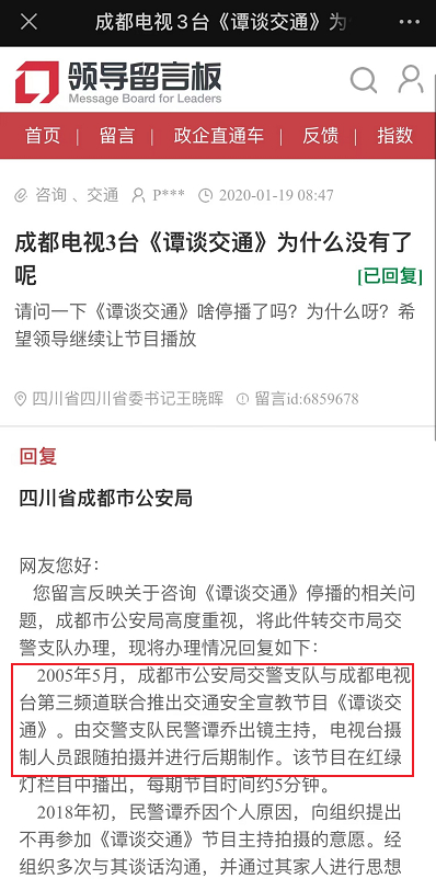 人民网 - 地方领导留言板《 成都电视3台《 谭谈交通 》为什么没有了呢? 》