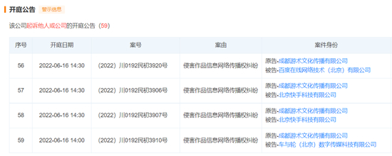 我又仔细翻了一下,发现被告席上 “ 坐 ” 了百度、快手、优酷、咪咕、爱奇艺、华为和B站。。。