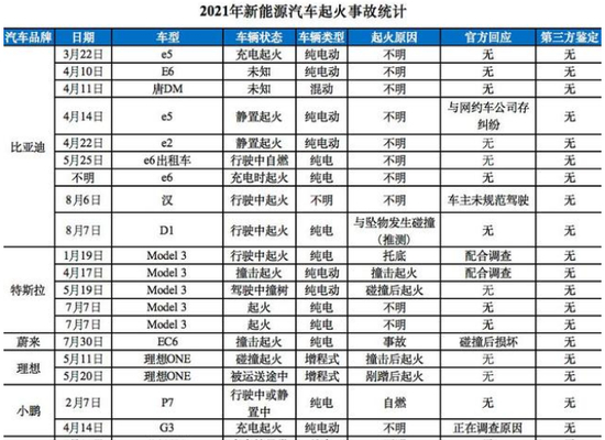 在2021年以比亚迪、特斯拉、蔚来、小鹏、理想等造车新势力TOP5为例,每一家都有车辆起火的事故发生,但最终事故原因和如何改进技术并未呈现,各家车企一旦出现事故多是第一时间内撇清关系,才造成了外界所言的造车新势力“冷血”一说。
