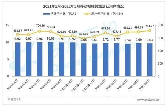 5月,移动视频活跃用户数达到9.63亿人,用户使用时长实现三个月持续增长,达到714.77亿小时,成为近一年内最高值,同比增长10%。
