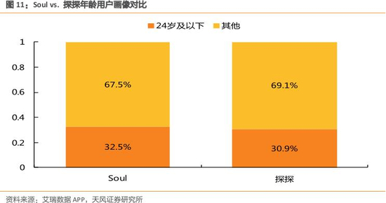 从用户画像看,Soul和探探的用户年龄分布很类似。
