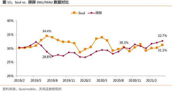 到2021年3月,Soul平均DAU和平均MAU分别上升至910万和3320万。