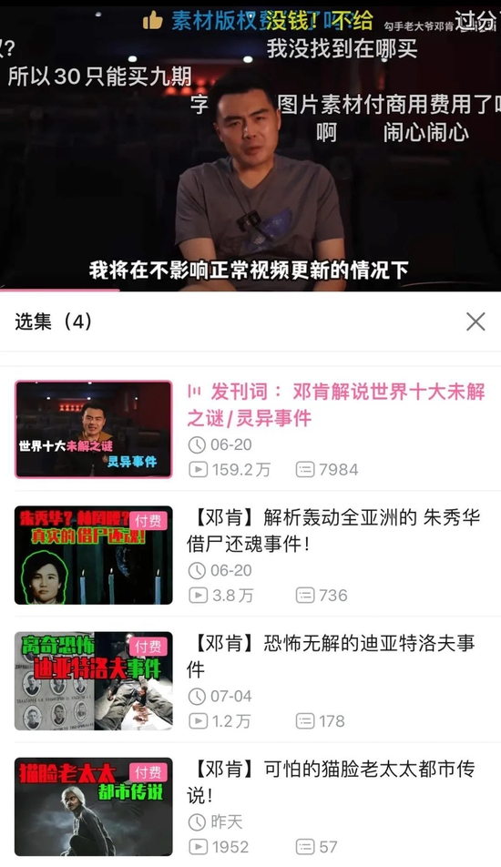 很多网友认为,邓肯主打的灵异猎奇类视频“本身就是很多人都讲过的”,还要收费,就很离谱。
