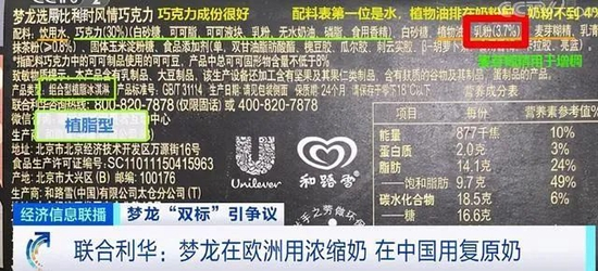 比如,梦龙雪糕在欧洲用浓缩奶,在中国用复原奶事件曝光时,根据中国农垦乳业联盟经济专家组组长宋亮测算,复原奶与浓缩奶每吨价格差会达到3000-4000元。要知道,从1996年进入国内市场起,梦龙雪糕就被冠以“贵族雪糕”称号,2020年国内市场年销售额近10亿元。