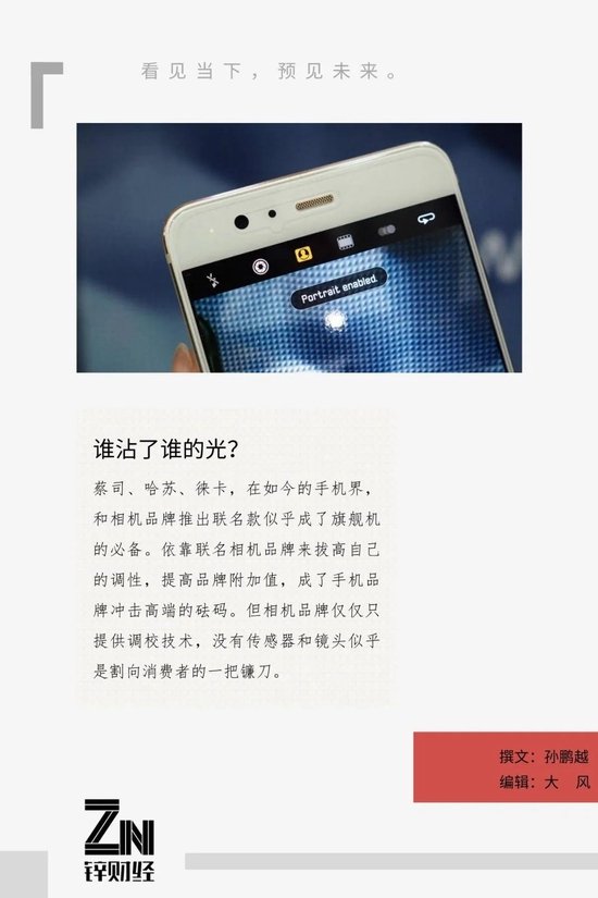 对于手机厂商来说,图像传感器的争斗能有效降低手机生产成本,那和相机品牌(蔡司、哈苏、徕卡)的合作,则是增加品牌附加值,提高手机定价。