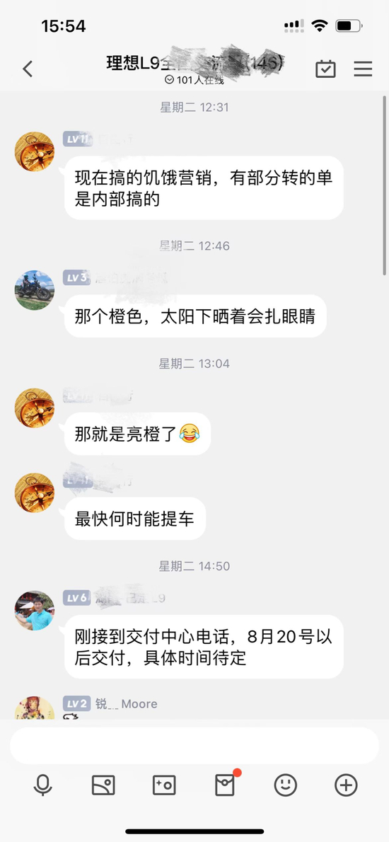 一位车友在群里表示,自己刚刚接到交付中心电话,对方告诉他,他的车将在20号交付,提醒他准备好尾款。该车主同时还晒出自己APP订单消息,订单显示,他的车将在8月内交付。