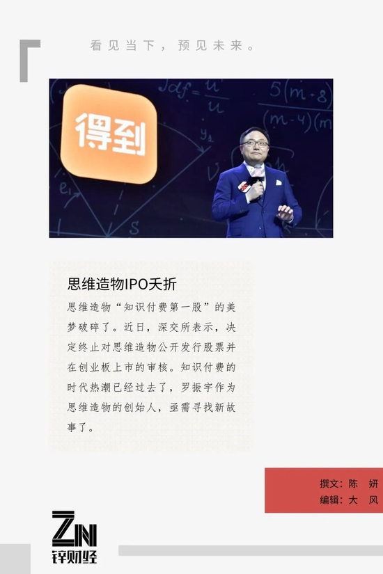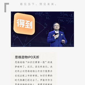 IPO折戟,也意味着思维造物在资本市场的想象力有限,知识付费的天花板太低,罗振宇作为思维造物的创始人,亟需寻找新故事了。