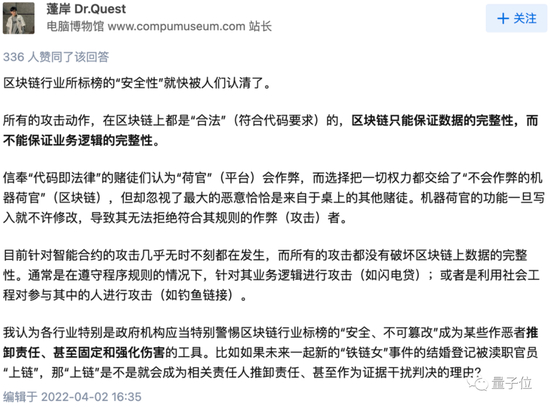 区块链只能保证数据的完整性,而不能保证业务逻辑的完整性。