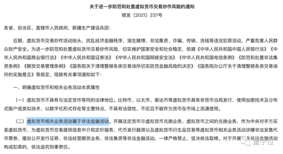 事实上,早在去年9月,中国人民银行等十部门就发布了《关于进一步防范和处置虚拟货币交易炒作风险的通知》,其中有这么一条: