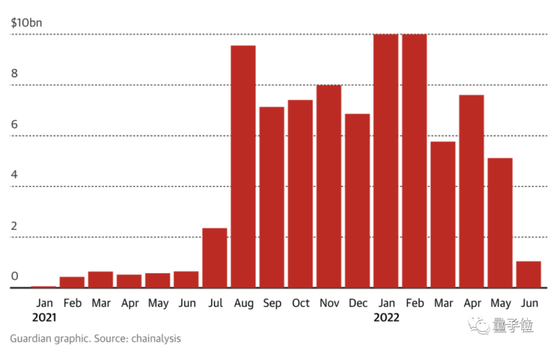 据区块链分析公司Chainalysis介绍,2022年NFT的销售额,从1月的126亿美元,一直下降到6月的10亿美元左右,呈现出一种暴跌的态势:
