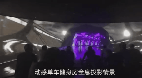 这个沉浸式健身房里里的动感单车,结合了沉浸式投影,随着你脚蹬单车,前方的屏幕上会出现不断变换的场景。