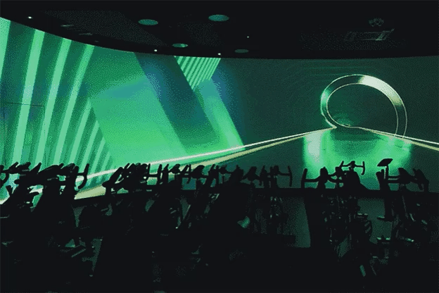 墙面上的全息投影和投影融合技术,会呈现各种逼真的场景,给你身临其境的畅跑体验!