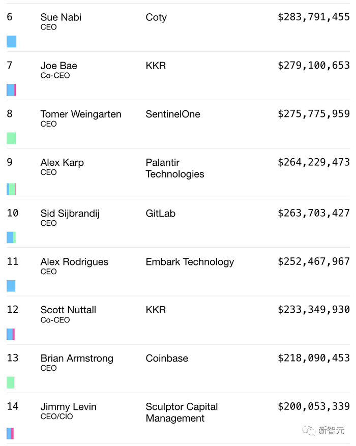 值得一提的是,排名第六的是Sue Nabi,薪酬最高的女性CEO,收入超3.43亿美元。