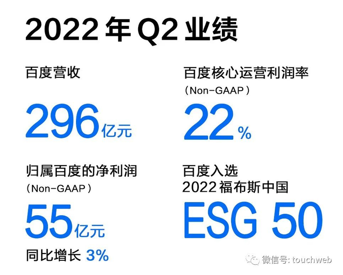 百度2022年第二季度营收296.47亿元(约44.3亿美元)。