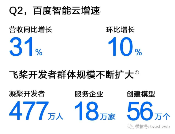 百度智能云业务营收同比增长31%,环比增长10%,增速再次领跑行业。