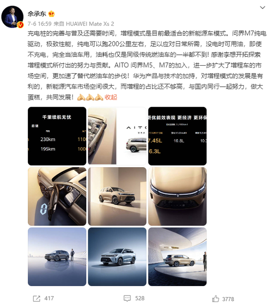 问界车型能够爆卖,当然也离不开余承东的卖力吆喝,甚至于不惜用一系列的极限词汇来表达对于问界车型的赞美。