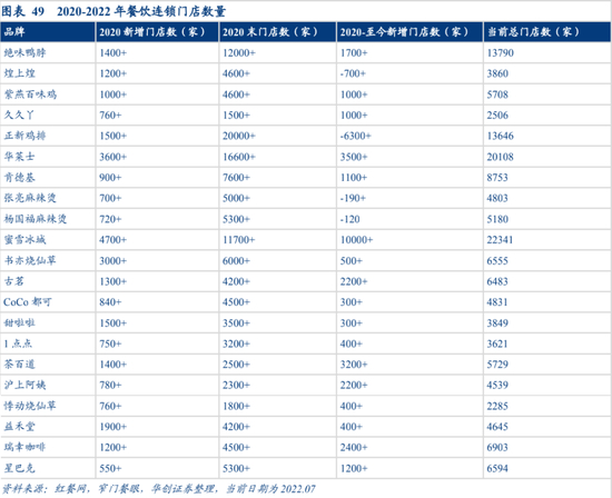 华创证券的一份数据显示,2020-2022年,21家连锁餐饮品牌中有17家实现了门店数量增长,其中蜜雪冰城以10000+的增长冠绝表单。