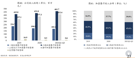 杨国福69.62%的门店开在二线、三线及以下城市,2019年至2021年前3个月,二线及以下城市的销售额超过总体营收的80%,成为支撑杨国福收入的幕后功臣。