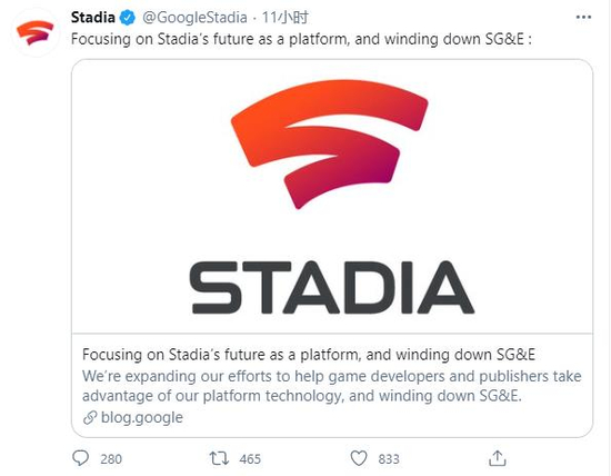 彼时,副总裁哈里森在博客中写道“考虑到我们将重点放在Stadia的成熟技术上,并加深我们的业务与合作伙伴关系,我们已经决定,除了任何近期计划的游戏之外,我们将不会进一步投资从内部开发团队SG&E带来的独家内容。”
