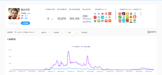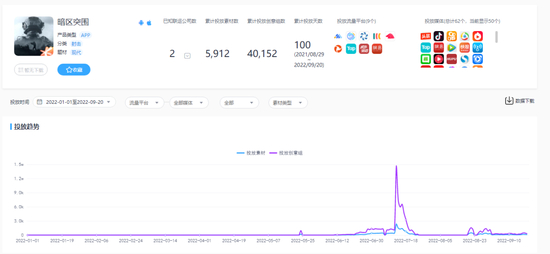 腾讯今年很重视的硬核游戏“暗区突围”,则在7月份达到过一个投放高峰,此后就几乎不再做过多投放。