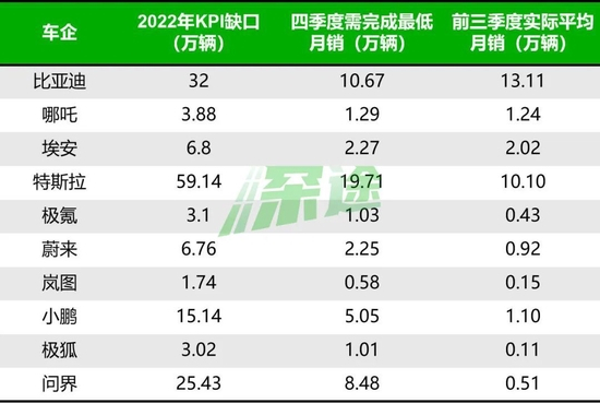 再比如小鹏,今年的目标是确保25万辆,冲击30万辆。前9个月的成绩是不到10万辆,单月交付量在1万辆上下。所以今年的KPI不可能完成。
