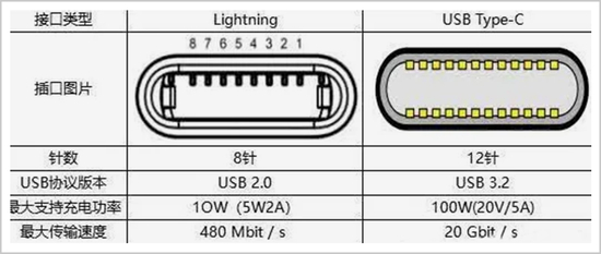 ▲Lightning和Type-C对比