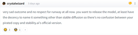 在 Hugging Face 的帖子被关闭之前,仍然有极少数人站在 Stability AI 这边,大意是说 Runway 这个做法不体面,一个真正“稳定”的版本应该大家一起商量发布,更何况 Stable Diffusion 这个命名,本身就印证着它跟 Stability AI 有巨大的关系。