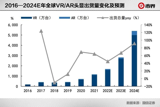 10月28日,五部门联合发布关于虚拟现实产业发展的通知,当中提及,到2026年,我国虚拟现实产业总体规模超过3500亿元,虚拟现实终端销量超过2500万台。