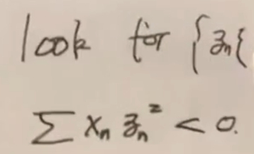我们考虑一下数论的历史,一开始我们总是有这样的问题,要去构造一个yn。第一个条件是,这个yn必须是非负的,或者什么样,然后它乘以χn,加起来要小于0,要去构造这样一个yn。