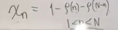 很明显如果ρ(n)是负的,它必须等于-1,而且他负的充要条件是ρ(n)和ρ(N-n)都是素数。这时候χn才可能是负的,正好等于-1。