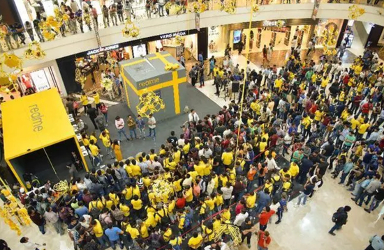 在经过充分准备之后,于2018年5月,realme在印度市场正式推出了旗下的第一款手机realme 1。虽然是一个新品牌,但凭借优秀的产品力以及时尚的外观,realme 1首销两分钟便被抢购一空,全系列成为亚马逊“best seller”。上市第一个月,realme 1就占领了当地市场1%的份额,开售次月即拿下6月印度线上市场畅销智能机销量第二名。2018年第四季度,市场研究机构Counterpoint发布的数据显示,realme成为印度手机市场排名第四的品牌,是最快达到400万台手机销量的手机品牌。