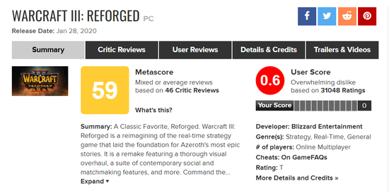 作为一家游戏公司,它这两年出现频率的新闻是人事变动和职场丑闻。而和它游戏相关的新闻,不是宣布跳票,就是差评——比如说知名游戏评分网站Metacritic上被玩家评分0.5分(满分10分)的《魔兽争霸3:重制版》。