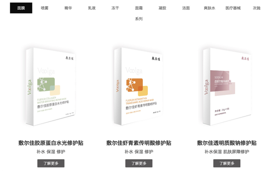 敷尔佳产品矩阵 图源:官网