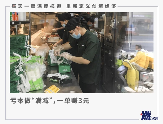只是餐饮业也无法拒绝外卖,“做不做外卖满减,不是生存问题,而是生死问题。”即使外卖是“亏本赚流量”,仲少峰亦表示,能参加的满减活动他都会参与,“挣不挣钱先放一边,毕竟参与就会有流量,让大家伙稍微有点事情干。”