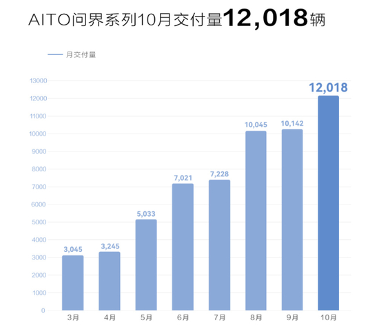 此前公布的10月产销数据显示,赛力斯汽车交付量达到12047台,同比增长461.37%,这是其继8月、9月后,连续三个月单月销量破万。据乘联会最新数据显示,赛力斯汽车更是一举跻身10月新能源厂商销量排行榜单前十,超越理想、蔚来、小鹏等造车新势力,可谓正式迈入了新能源汽车造车的头部阵营。
