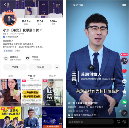 目前快手上一些已经做到千万级规模的头部快品牌,如莱润、艾瑞万、GG 潮牌等。快手帮助商家做兴趣匹配,提供流量和营销方面的支持,帮它们找到合适的用户;还会总结指导一些可行的方法论、提供金盘操盘手,来助力品牌成长。