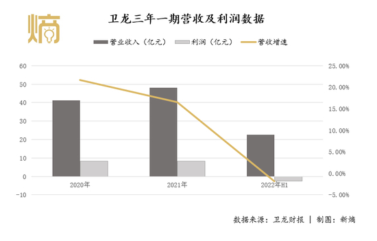 最令人头疼的是,卫龙的营收增速正在放缓。根据招股书数据,在2019年、2020年、2021年及2022年上半年,卫龙营业收入分别为33.85亿元、41.20亿元、48亿元及22.61亿元,对应的同期利润分别为6.58亿元、8.19亿元、8.27及亏损2.6亿元。
