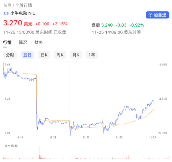 小牛电动股价变化图 图片来源:百度股市通