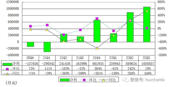 拼多多2022年第三季度归属于公司股东的净利为105.89亿元 (约14.89亿美元),较上年同期的16.4亿元增长546%;Non-GAAP下净利为124.47亿元,较上年同期的31.5亿元增长295%。