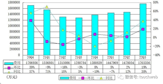 其中,拼多多2022年第三季销售与市场费用为140.49亿元,较上年同期的100.5亿元增40%;管理费用为9.07亿,较上年同期的3.35亿元增长171%。
