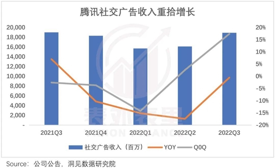 数据显示,腾讯社交广告业务经历连续几季度的负增长后,在Q3止跌反弹,实现环比正增长。